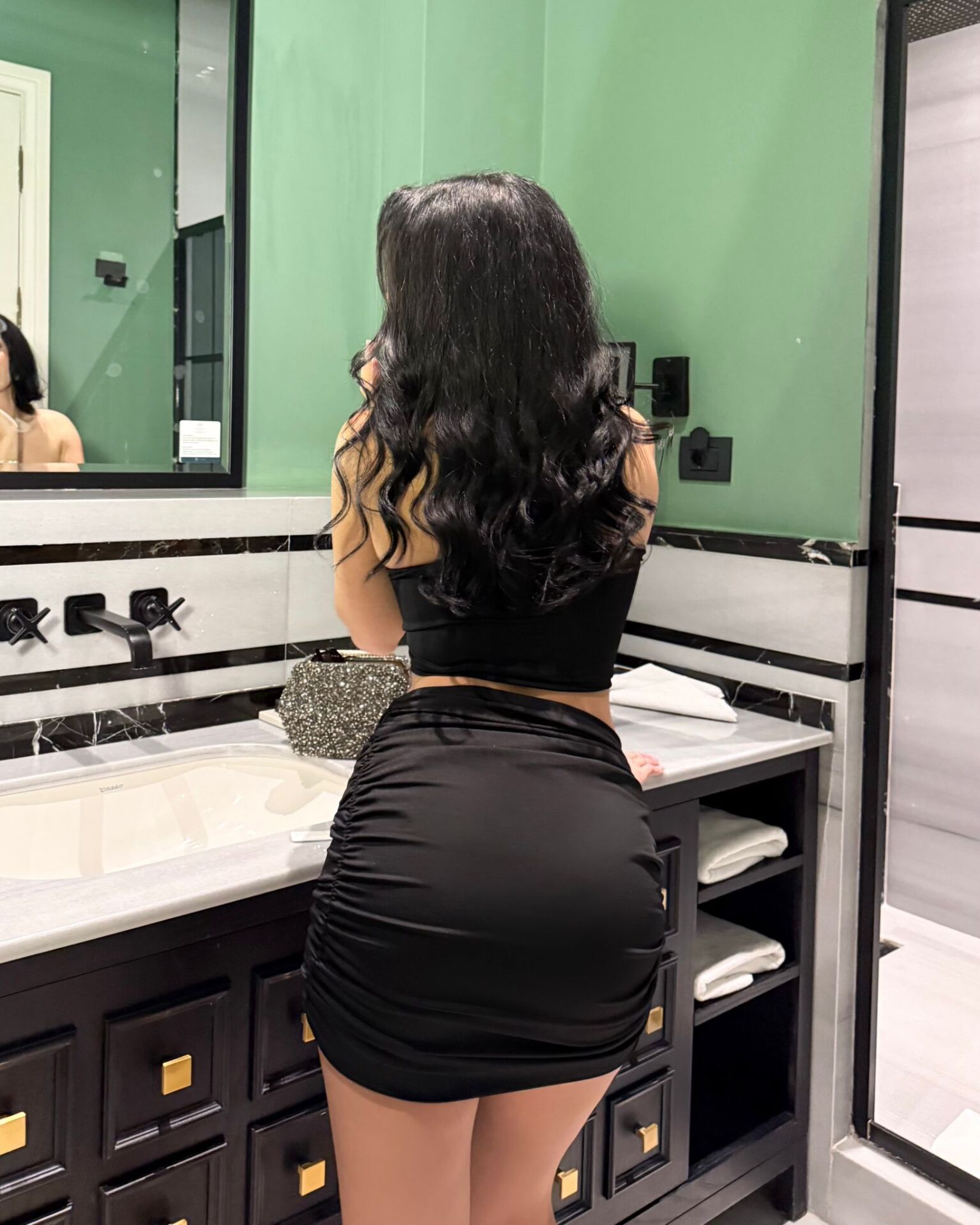 Takım İçeriği: 1 Adet Aksesuarlı Crop Üst + 1 Adet Büzgülü Etek